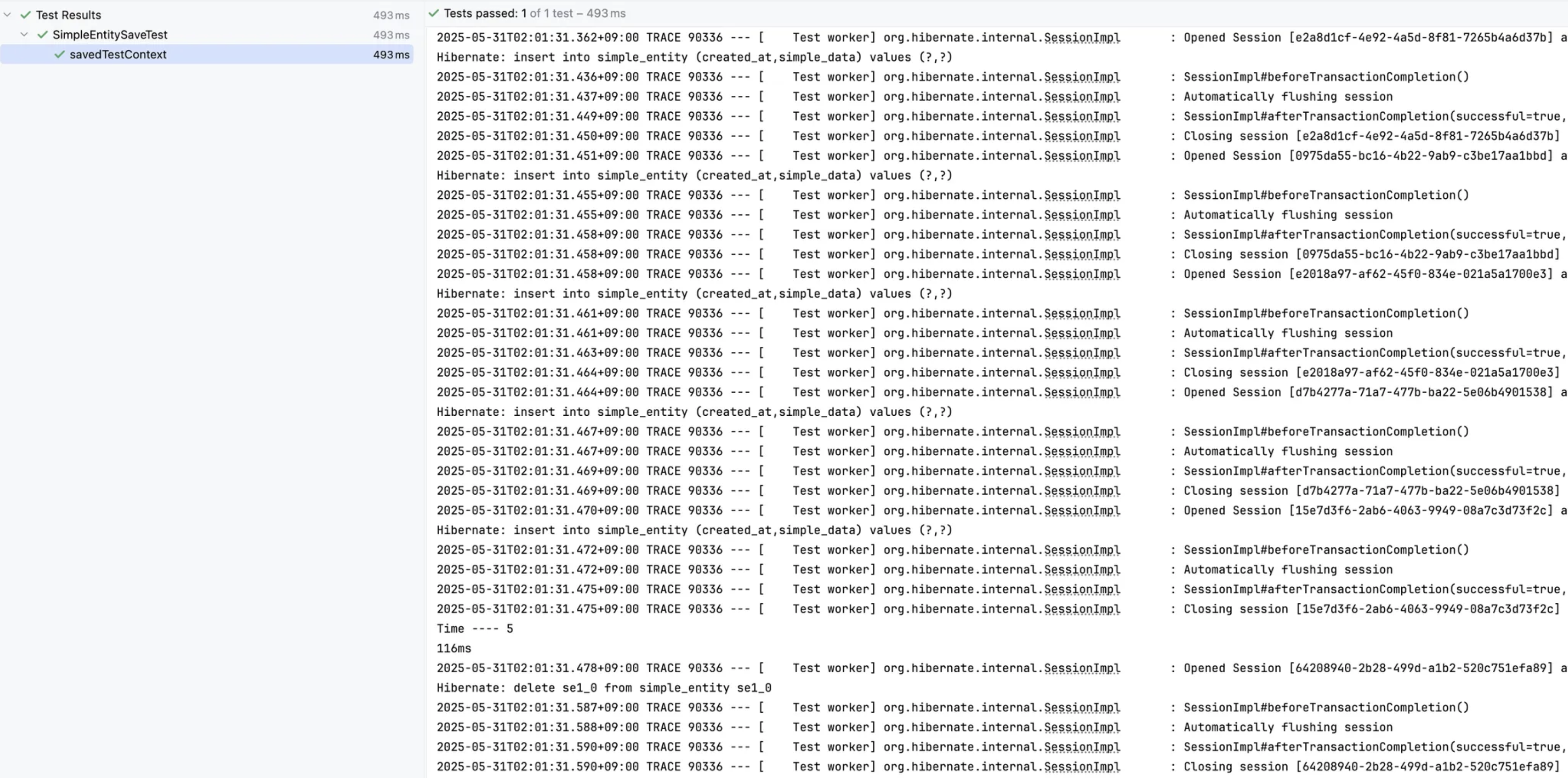 이를 통해 save 메서드는 메서드 호출시 마다 영속성 컨텍스트를 생성하고 메모리에 엔티티를 저장한 후 데이터베이스에 쿼리를 보내는 과정을 거치는 것을 알 수 있습니다.