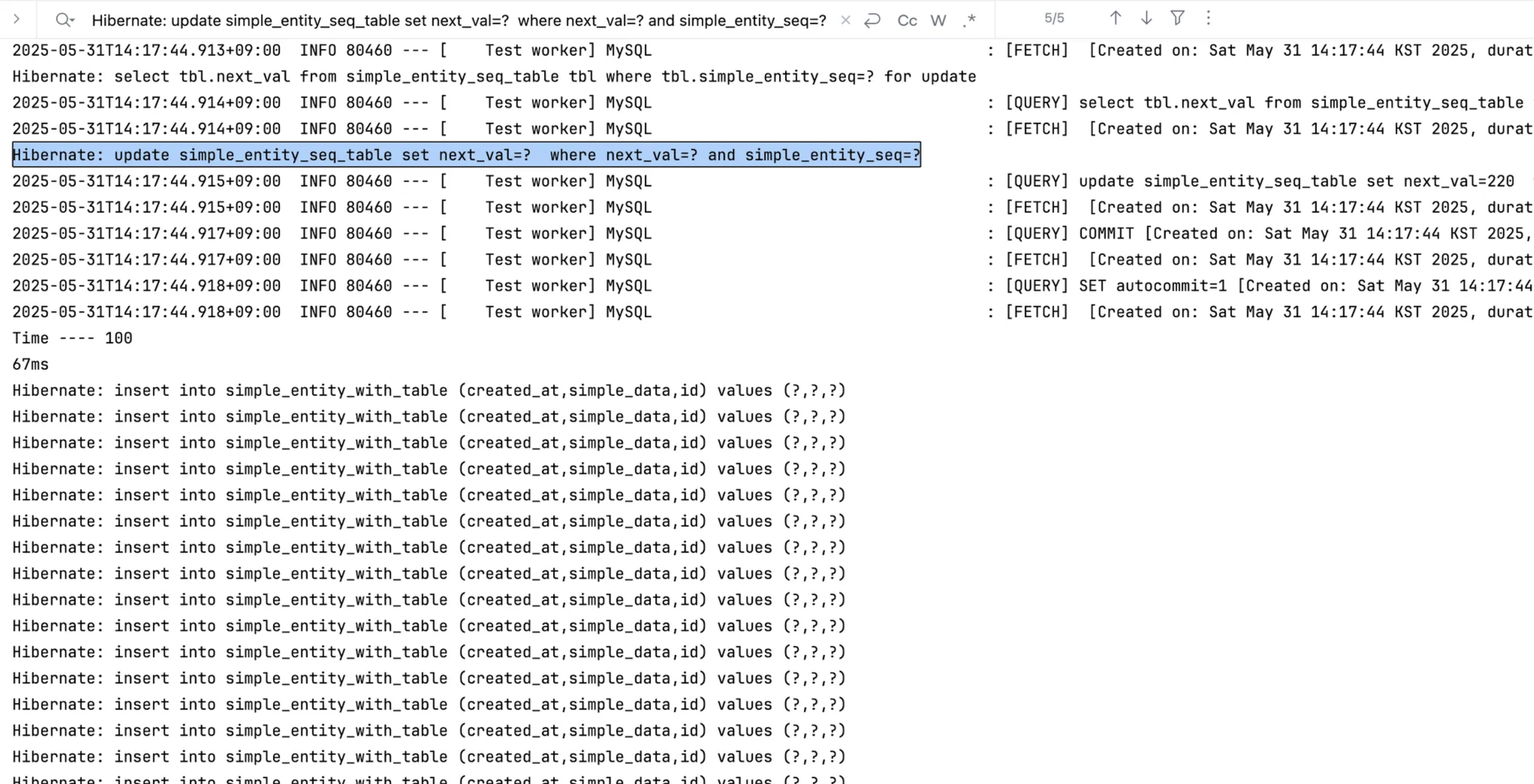 Jpa의 batch를 구현하기 위해 Identity 방식이 아닌 table 형식의 id Generate를 구현해 보는 경험도 했습니다. Postgesql의 sequence와 비슷한 듯 보였지만, 다른 엔티티들과 동일하게 테이블로 관리가 되며 next_val을 조회한 후 수정하는 방식으로 작동하며, 직접 수정이 가능하다는 점에서 race condition 이 발생할 가능성이 커 보여 좋지 않은 방식이라 여겨졌습니다.